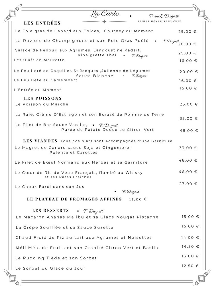 « Le Chef vous Propose Également, sur Les Ardoises Disposées dans la Salle, Les Suggestions selon le Marché à la Carte »